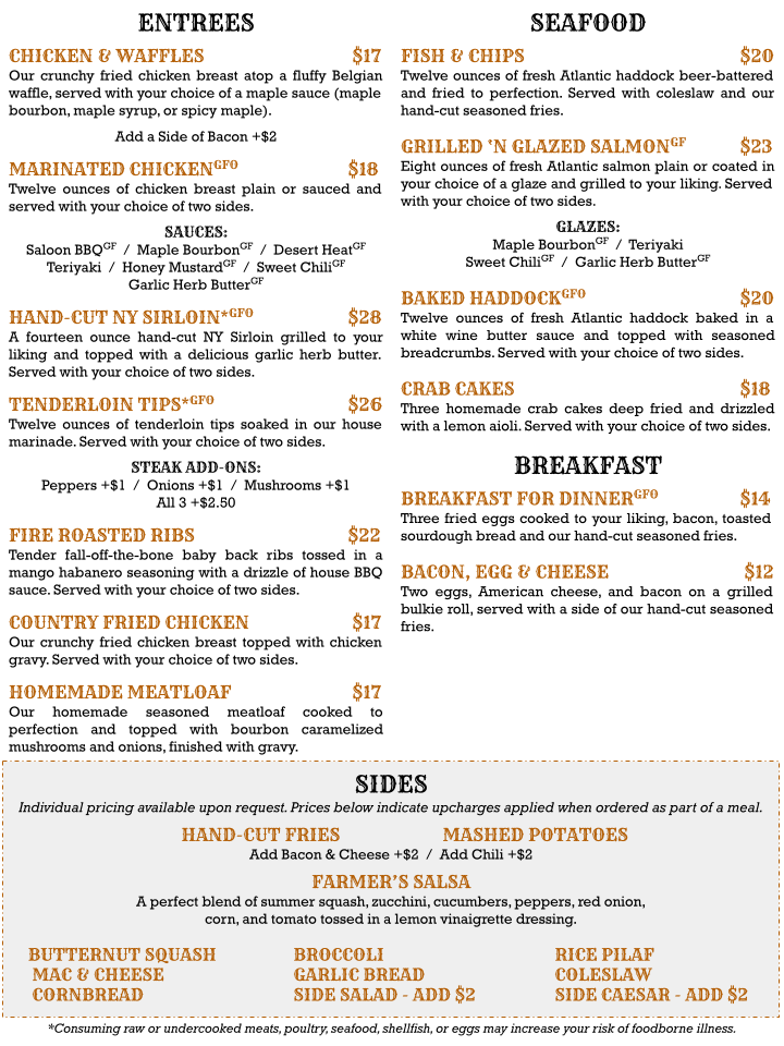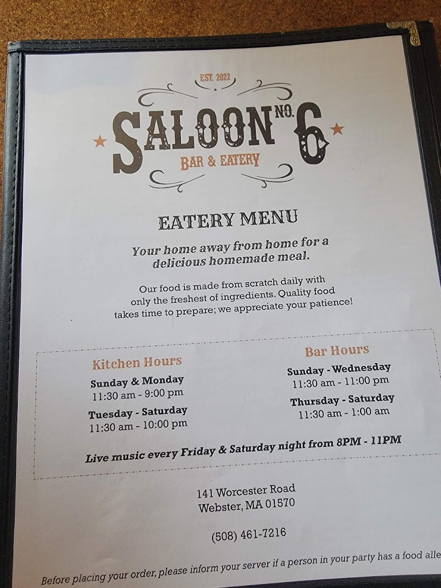 On Fisherman Fridays, taste the ocean with their Scallop Dinner or classic Fish & Chips. Customers rave about the quality and freshness of the food. The friendly service and vibrant atmosphere enhance your dining experience, garnering high praise from locals. With generous portions and fair prices, every dish, from the six burger to the homemade mac & cheese, guarantees satisfaction. Come experience the perfect blend of comfort food and warm hospitality at Saloon No. 6!